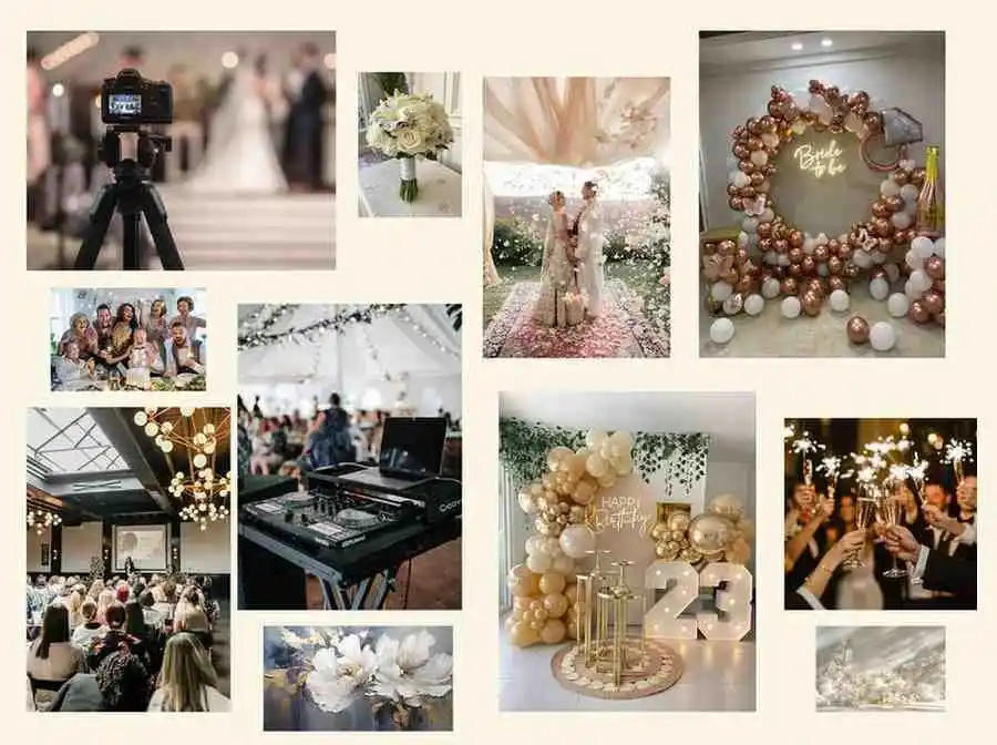 We provide comprehensive event planning services, including wedding planning, engagements, birthdays, anniversaries, corporate events, and social gatherings. We also offer additional services like photography, videography, DJ, catering, décor, lighting, and guest management.